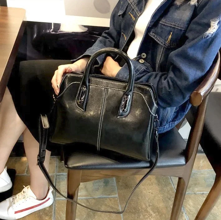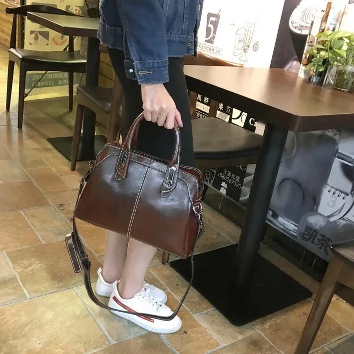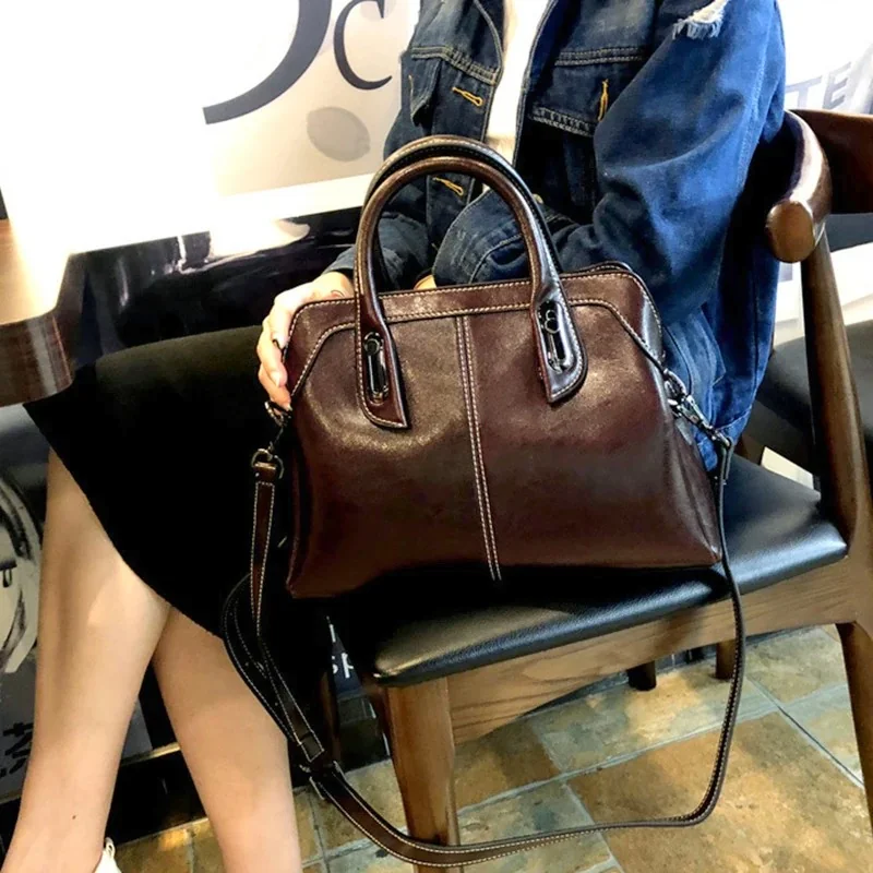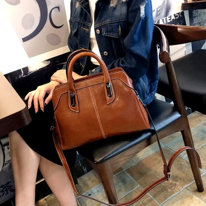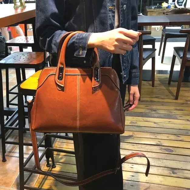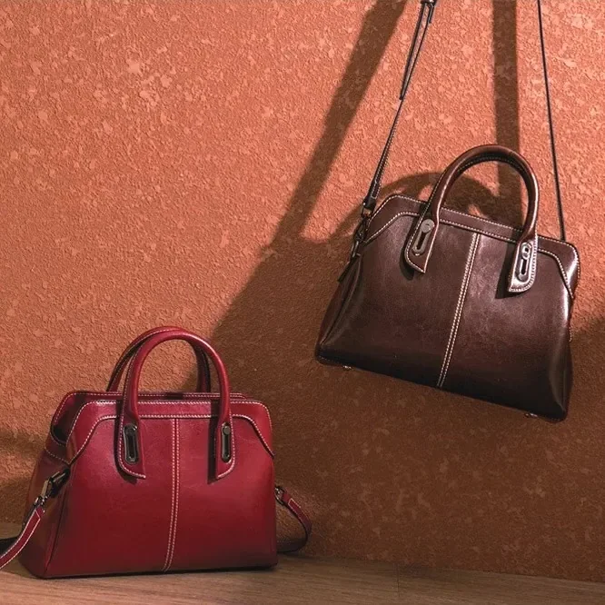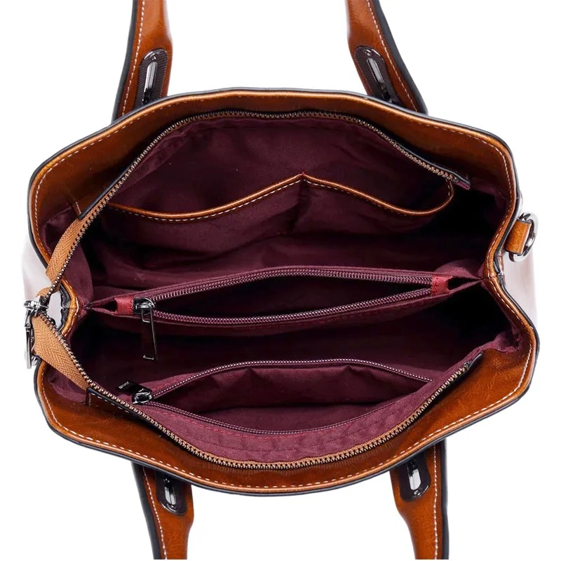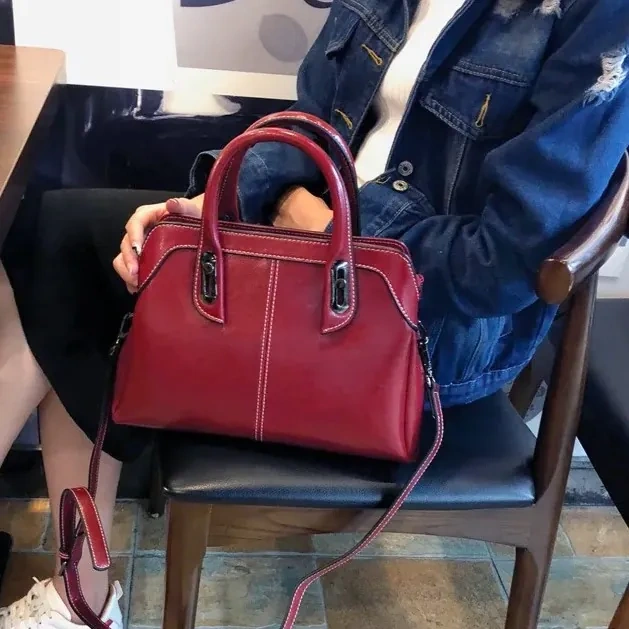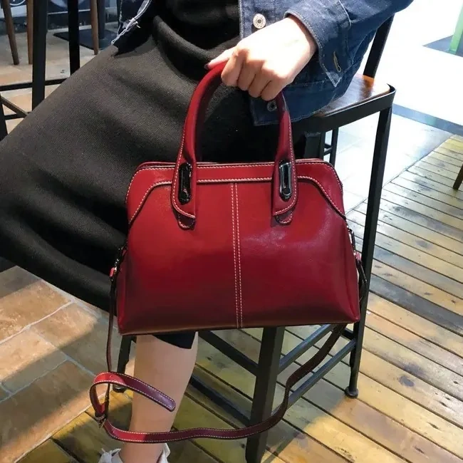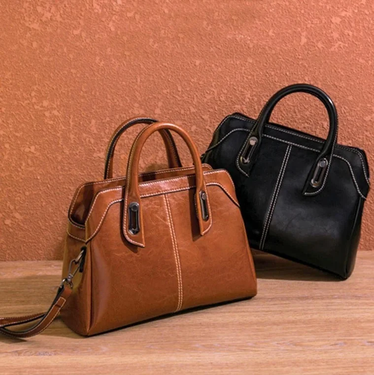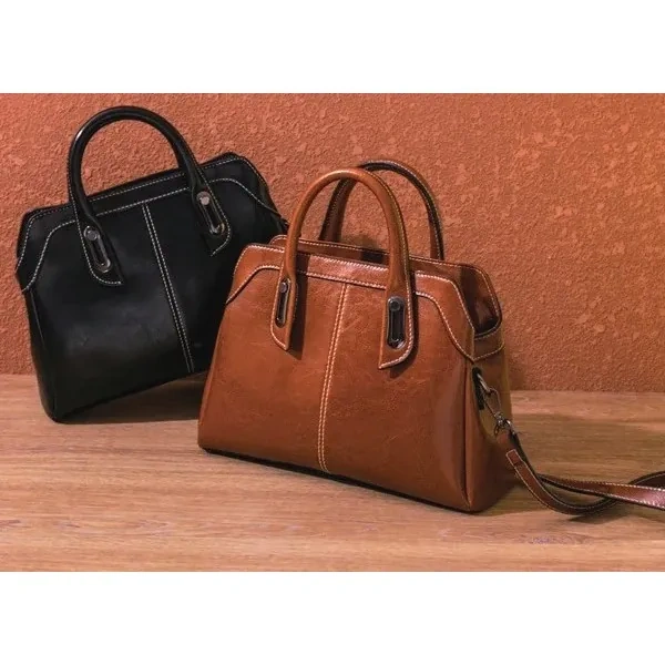 Handväska dam byggs i tätfiberläder som motstår sprickor. Läderväska dam får stabil form genom kantförstärkning.