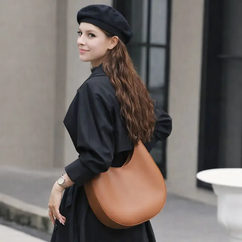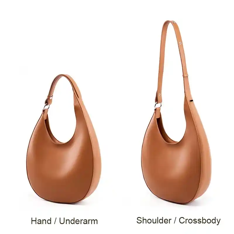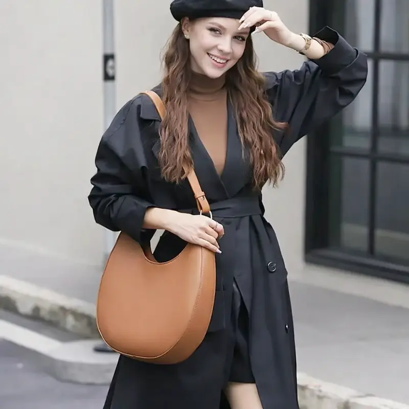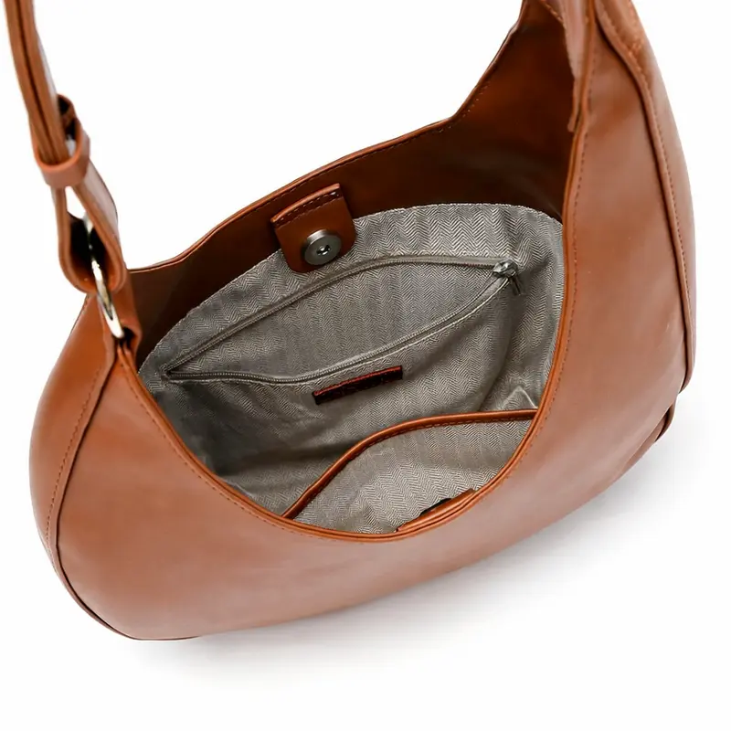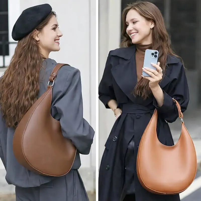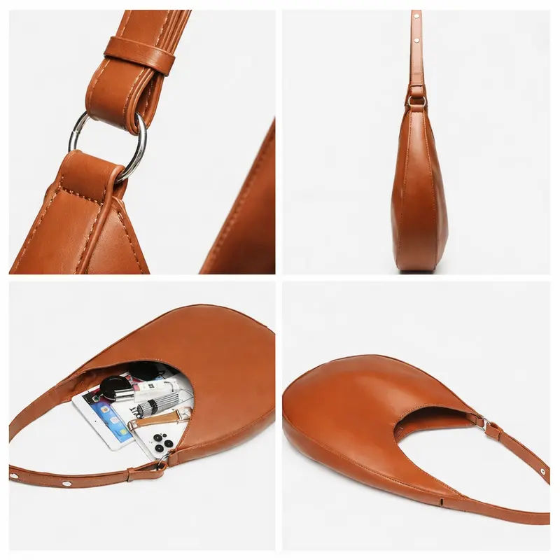 • Denna handväska i halvmåneform för dam kombinerar stilren design med praktisk användning.