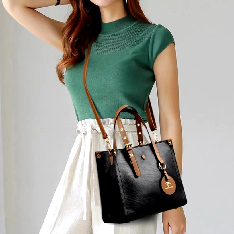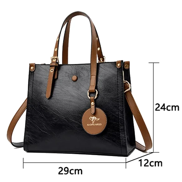 Med denna handväska får du en modell som passar flera tillfällen. Den har en storlek på 29 × 24 × 12 cm. Den har innerfack med dragkedja för säker förvaring. Väskan finns i svart, röd, grön, grå och brun. Den fungerar bra till shopping, resa eller dagligt bruk. Den neutrala designen gör att väskan kan matchas med olika kläder. Den är perfekt för kvinnor som vill ha en tidlös och pålitlig accessoar.