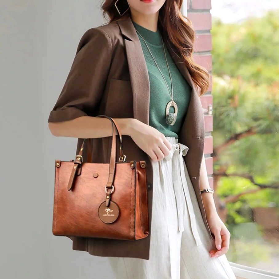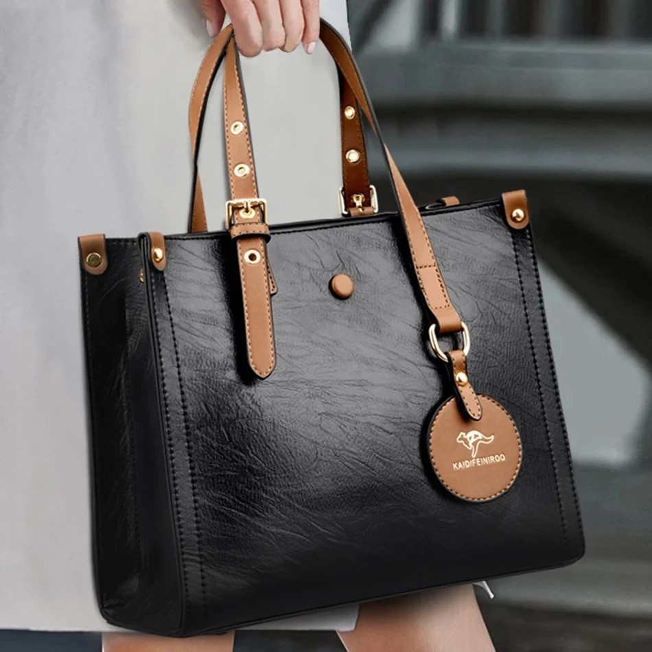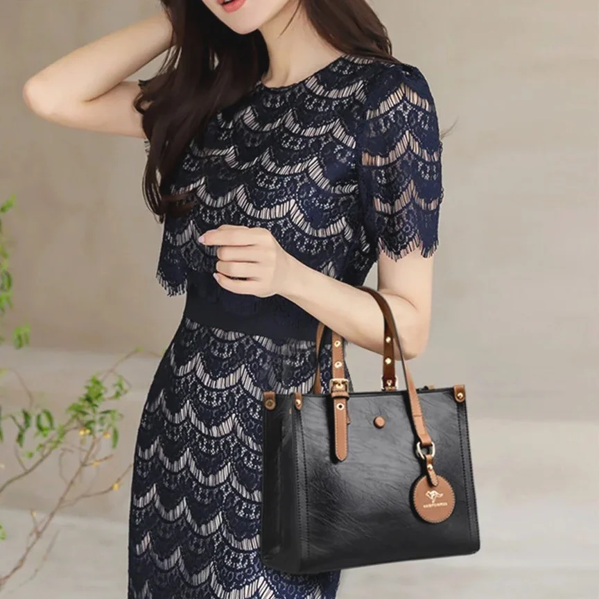 En lyxig handväska för dam i polyester med klassisk vintage design. Väskan är rymlig och praktisk. Den finns i flera färger och passar för vardag, shopping och arbete. Det är en mycket vacker vintage handväska.