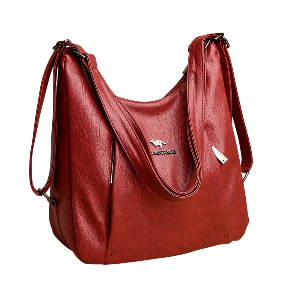 Röd axelväska i läderimitation med hög kapacitet. Modern, praktisk och mångsidig design som rymmer allt du behöver varje dag.