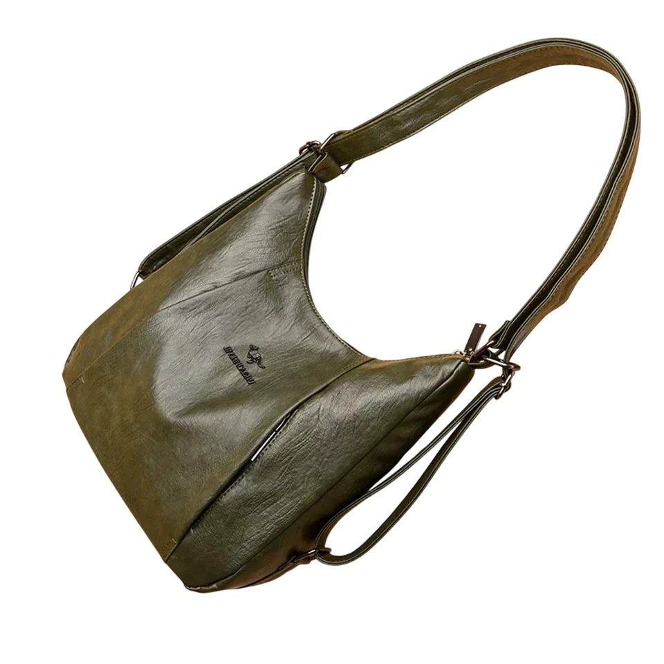 Denna handväska med axelrem är en elegant följeslagare för kvinnor som uppskattar stil och funktion. Modellen har en mjuk struktur i polyester med metallspännen och dragkedja.