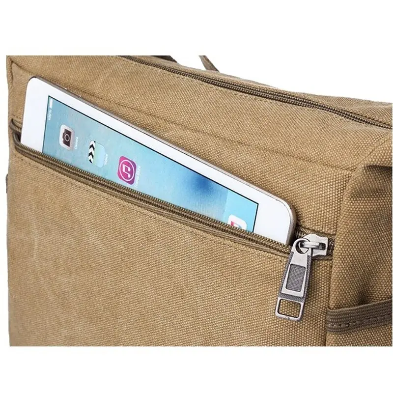 Den här modellen har genomtänkt design med plats för surfplatta, mobil, nycklar och plånbok. Axelväskan i canvas är lätt att bära tack vare den breda remmen och håller dina saker säkra i separata fack. Ett perfekt val för dig som vill ha en snygg och funktionell väska för vardagsbruk.