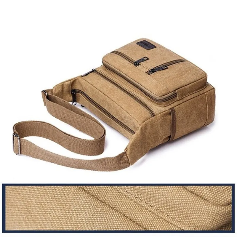 Letar du efter en praktisk och snygg väska? Den här axelväskan i canvas kombinerar funktionalitet och stil. Med flera dragkedjefack, justerbar rem och slitstarkt tyg är den ett idealiskt val för dig som behöver ha allt nära till hands – oavsett om du är på väg till jobbet, skolan eller en stadspromenad.